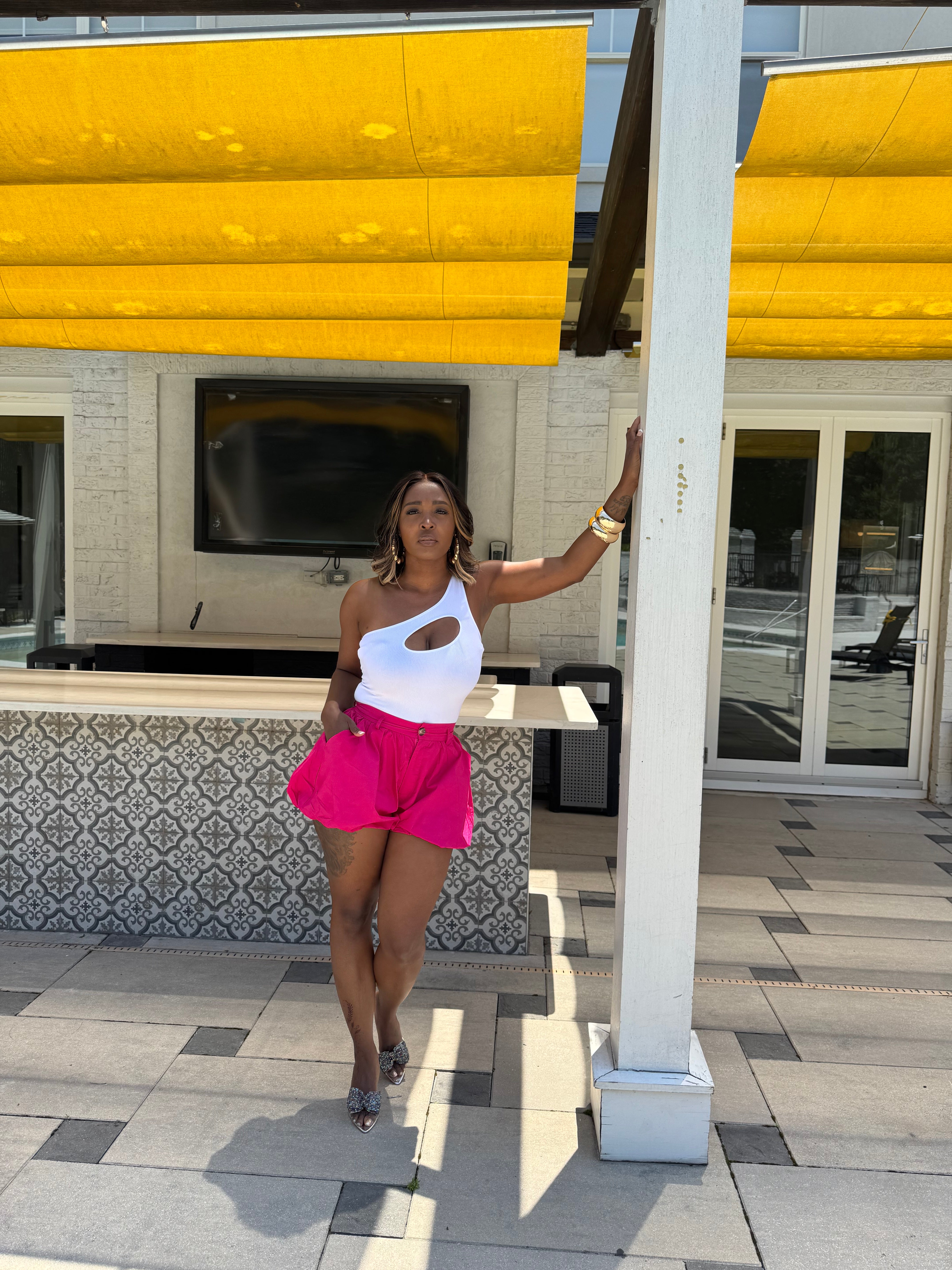 These cute puffy shorts will have you feeling like you're on Cloud 9. These shorts feature a bubble style hem that looks super cute and fun and a front button closure.