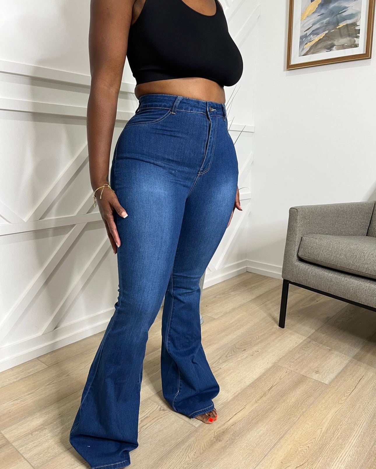 These jeans will hug every curve you have! They are high waist SUPER stretchy with a bell bottom design. Did I mention the STRETCH?