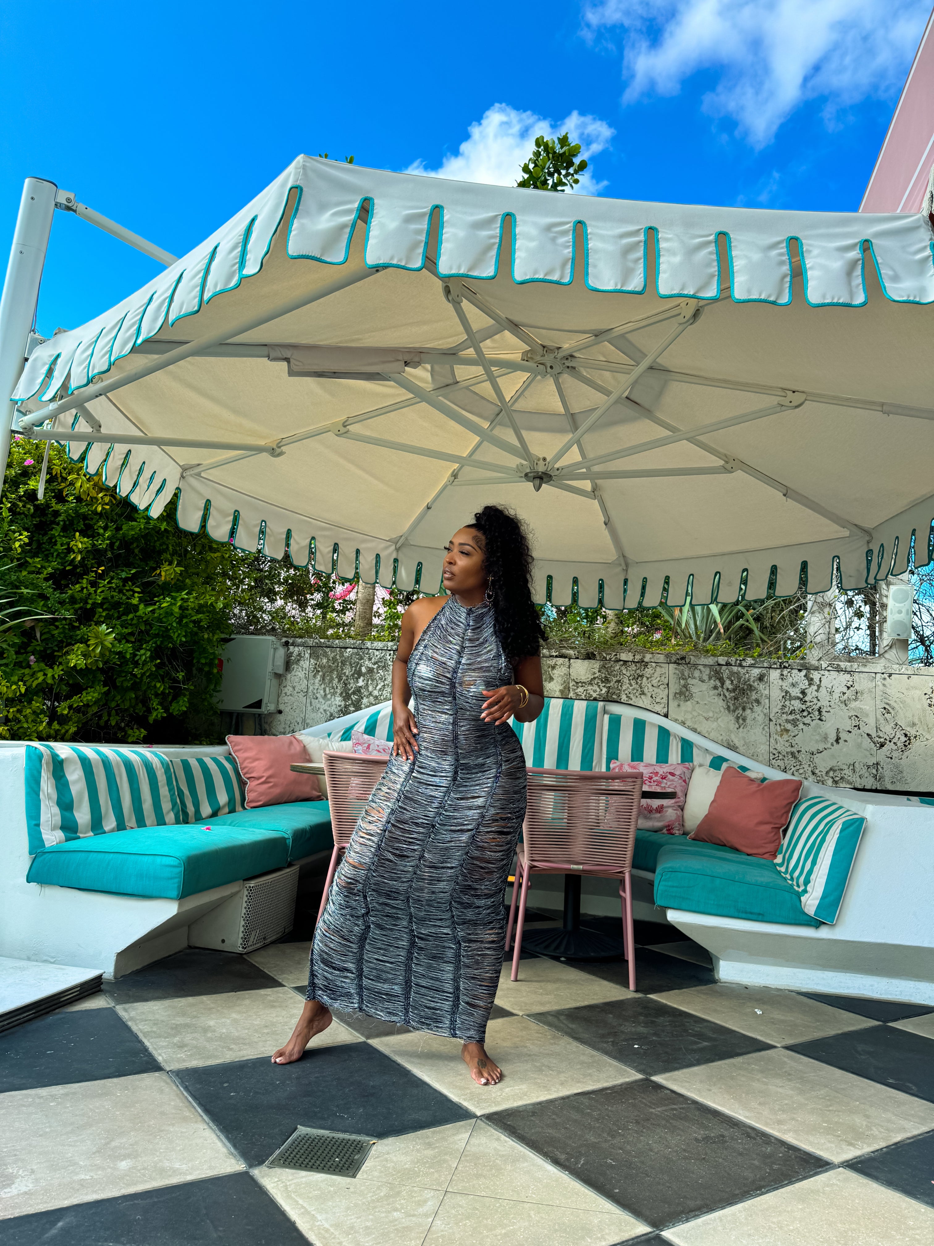 This silver metallic coverup is a head turner! This dress can be worn as a cover up and if your daring like me…..out for a night on the town! With a backless halter designs and a drawstring waist tie for extra snatch. This is a dress you need on vacation ASAP!