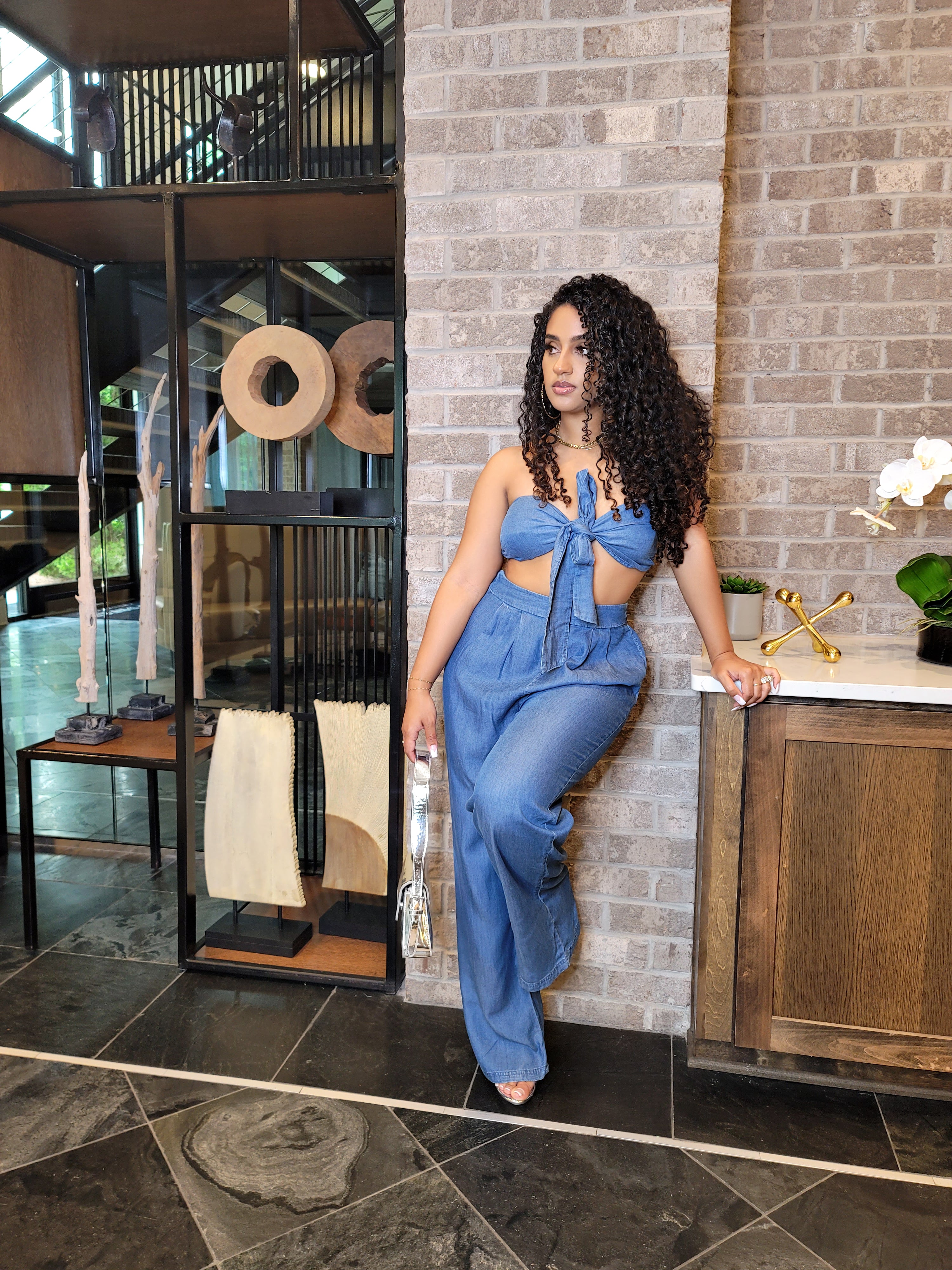 This super cute denim pants set is a look.