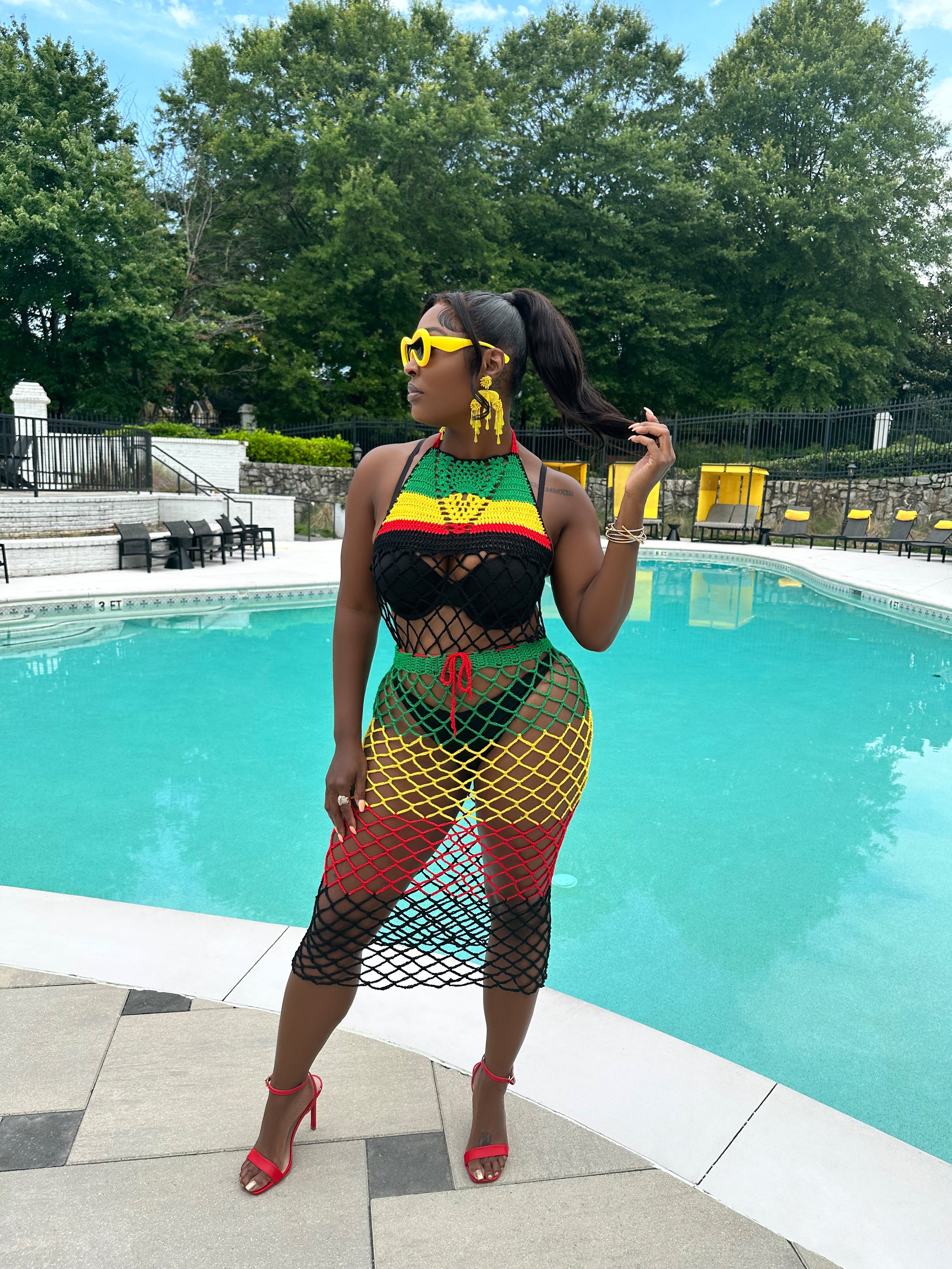 Going on vacation soon? We got you covered on your next Caribbean destination. This fish net dress features and open back and bright colors to make sure you stand out in any room.
